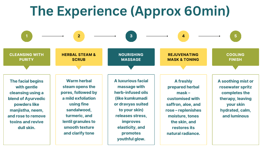 Unlike chemical facials that merely polish the surface, an Ayurvedic facial treats your skin as a living organ – connected to your emotions, diet, and inner state of harmony.
